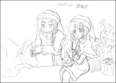 お絵かき掲示板でもほぼおんなじようなの描きましたが、それより先に会社でこっそり描いてたものです。